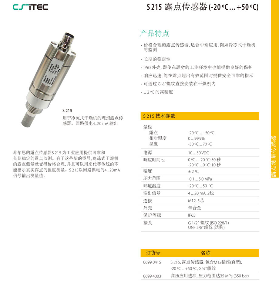 S 215 露点传感器 (-20 °C ... +50 °C)