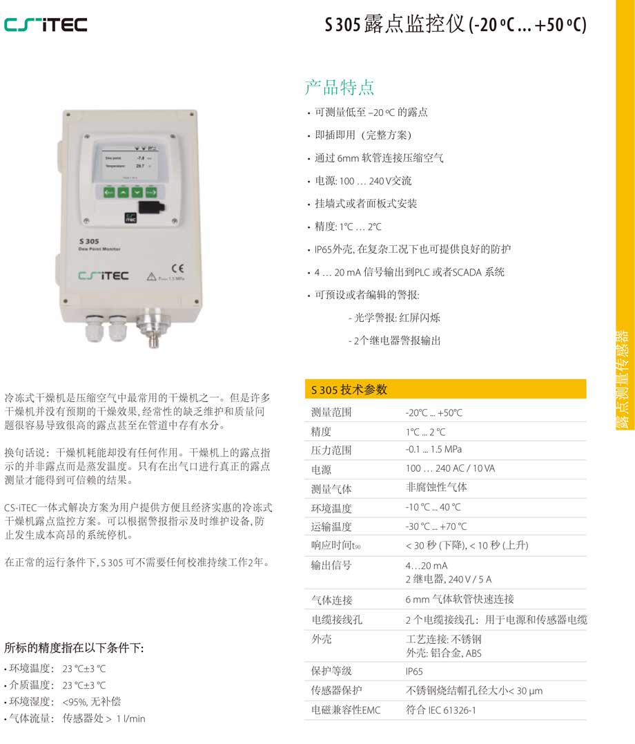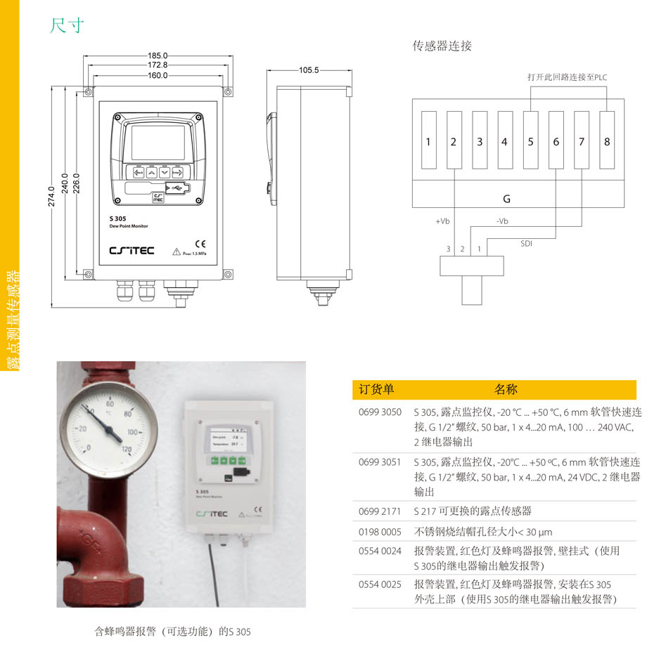 S 305 露点监控仪 (-20 °C ... +50 °C)